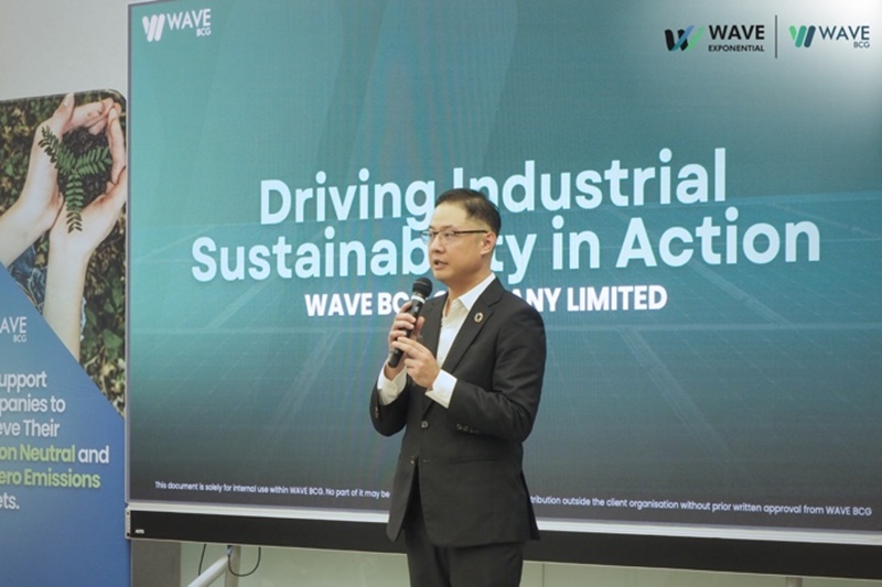 บริษัท เวฟ เอกซ์โพเนนเชียล จำกัด (มหาชน) หรือ (WAVE) จัดงานสัมมนาครั้งสำคัญ “Driving Industrial Sustainability in Action” เพื่อยกระดับอุตสาหกรรมไทยสู่การพัฒนาอย่างยั่งยืน” ให้กับผู้ประกอบการนิคมอุตสาหกรรมบางปู แชร์กลยุทธ์การจัดการคาร์บอนฟุตพริ้นท์และการลดก๊าซเรือนกระจก พร้อมแนะเทคโนโลยีลดต้นทุนและกลไกตลาดคาร์บอน หนุนผู้ประกอบการก้าวสู่ความเป็นกลางทางคาร์บอน (Carbon Neutrality) และการปล่อยก๊าซเรือนกระจกสุทธิเป็นศูนย์ (Net Zero Emission) พร้อมรับมือกับความท้าทายจากมาตรการ Carbon Border Adjustment Mechanism (CBAM) และร่างกฎหมายการเปลี่ยนแปลงสภาพภูมิอากาศฉบับแรกของไทย เพื่อเสริมแกร่งการแข่งขันในระยะยาว โดยได้รับเกียรติจาก นาย ธาตรี เล็กสุวัฒน์ ผู้ช่วยผู้อำนวยการสำนักงานนิคมอุตสาหกรรมบางปู มากล่าวเปิดงาน
