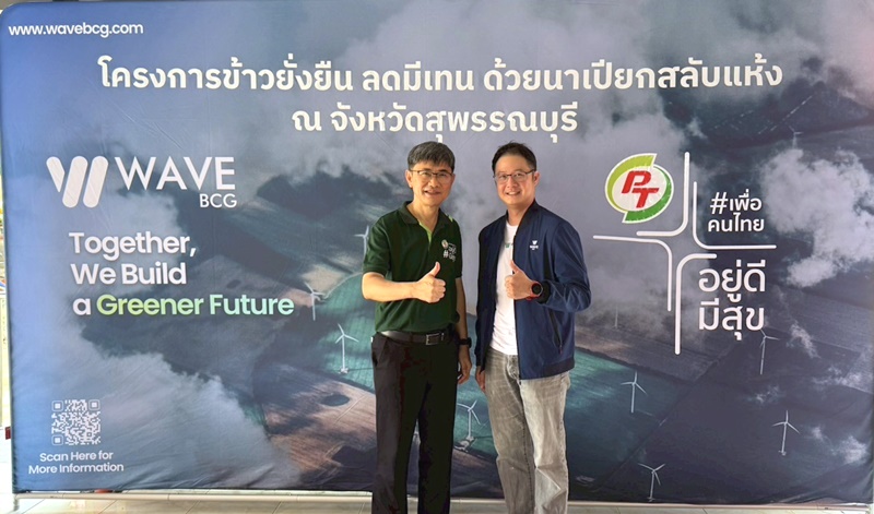 นายรังสรรค์ พวงปราง ผู้ช่วยกรรมการผู้จัดการใหญ่ บริษัท พีทีจี เอ็นเนอยี จำกัด (มหาชน) หรือ PTG กล่าวว่า บริษัทฯ ตระหนักถึงผลกระทบจากการเปลี่ยนแปลงสภาพภูมิอากาศที่เกิดขึ้นอย่างต่อเนื่อง และให้ความสำคัญกับการดำเนินธุรกิจอย่างมีความรับผิดชอบต่อสิ่งแวดล้อม โดยมีความมุ่งมั่นสนับสนุนเป้าหมาย Net Zero ของประเทศไทย จากความร่วมมือเวฟ บีซีจีในครั้งนี้จะเป็นก้าวที่สำคัญของการผนึกกำลังทุกภาคส่วน ทั้งเกษตรกร หน่วยงานภาครัฐ และภาคเอกชน เพื่อร่วมลดการปล่อยก๊าซเรือนกระจกด้วยการทำนาแบบเปียกสลับแห้ง พร้อมสร้างรายได้เสริมให้เกษตรกรผ่านโครงการคาร์บอนเครดิต ทั้งยังลดการใช้น้ำในกระบวนการปลูกข้าว ทำให้เกิดการใช้น้ำอย่างมีประสิทธิภาพมากขึ้น นอกจากนี้การเข้ามาสนับสนุนโครงการ “ข้าวยั่งยืน ลดมีเทน ด้วยนาเปียกสลับแห้ง” ของ PTG ยังช่วยเสริมสร้างโอกาสทางธุรกิจและส่งเสริมการดำเนินงานด้านสิ่งแวดล้อมภายใต้กรอบ ESG และสนับสนุนเป้าหมายของประเทศไทยในการลดก๊าซเรือนกระจกและการพัฒนาเศรษฐกิจอย่างยั่งยืน